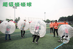培訓主題:趣味運動 項目說明:比賽開始前,參賽隊員穿戴好碰碰球進入比賽場地站好。比賽開始后,參賽隊員進行碰、撞、擠、推、將對手推出比賽場地,出了比賽場地比...